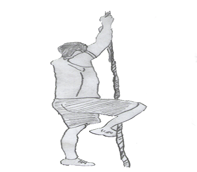 Wrap the rope with your one leg for support. Stretch up your arm as high as possible by holding the rope tightly.