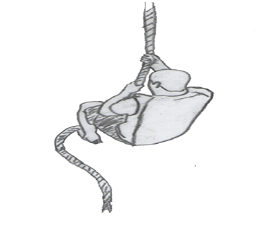 Raise yourself up by releasing the rope from your feet. Bring your knees towards your chest.