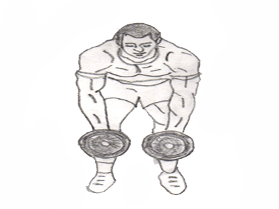 1. Get some dumbbells in your hands, stand straight and look forward. Now position your feet about shoulder-width apart and maintain slight bent of your knees and keep a neutral spine also keep your head facing down.