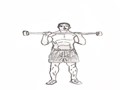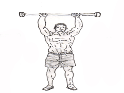 1. Hold a barbell tightly, push with palms and push it through your head. You need to raise it from your neck.