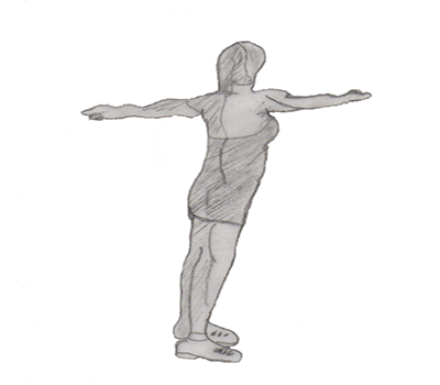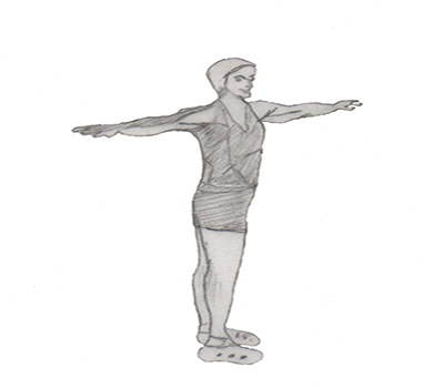 Stand straight with your feet width apart. Stretch your hand on your sides.