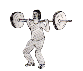As you begin the move, you will create the same dip on the knee that you did on push jerk, So actually dip on the knee, extend the hips fully and this will create lift on the bar.